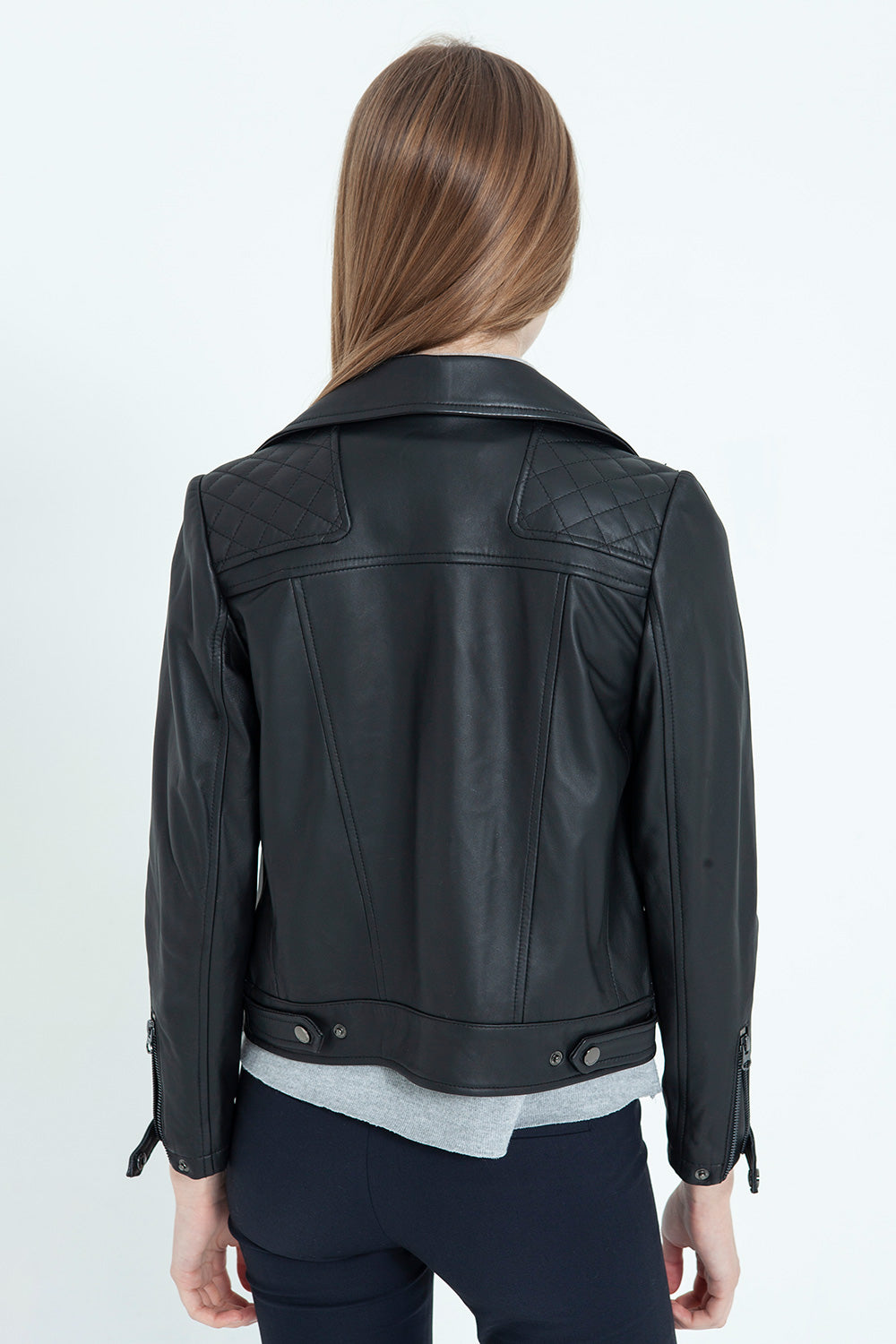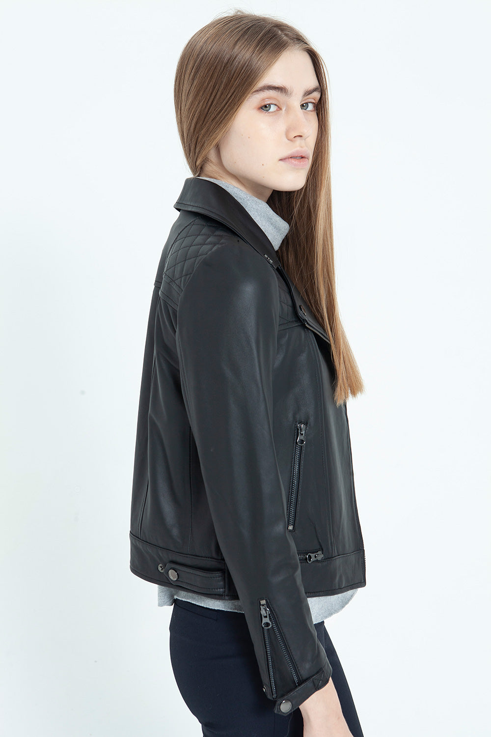 • 肩膀鋪棉菱格縫線凸顯設計感