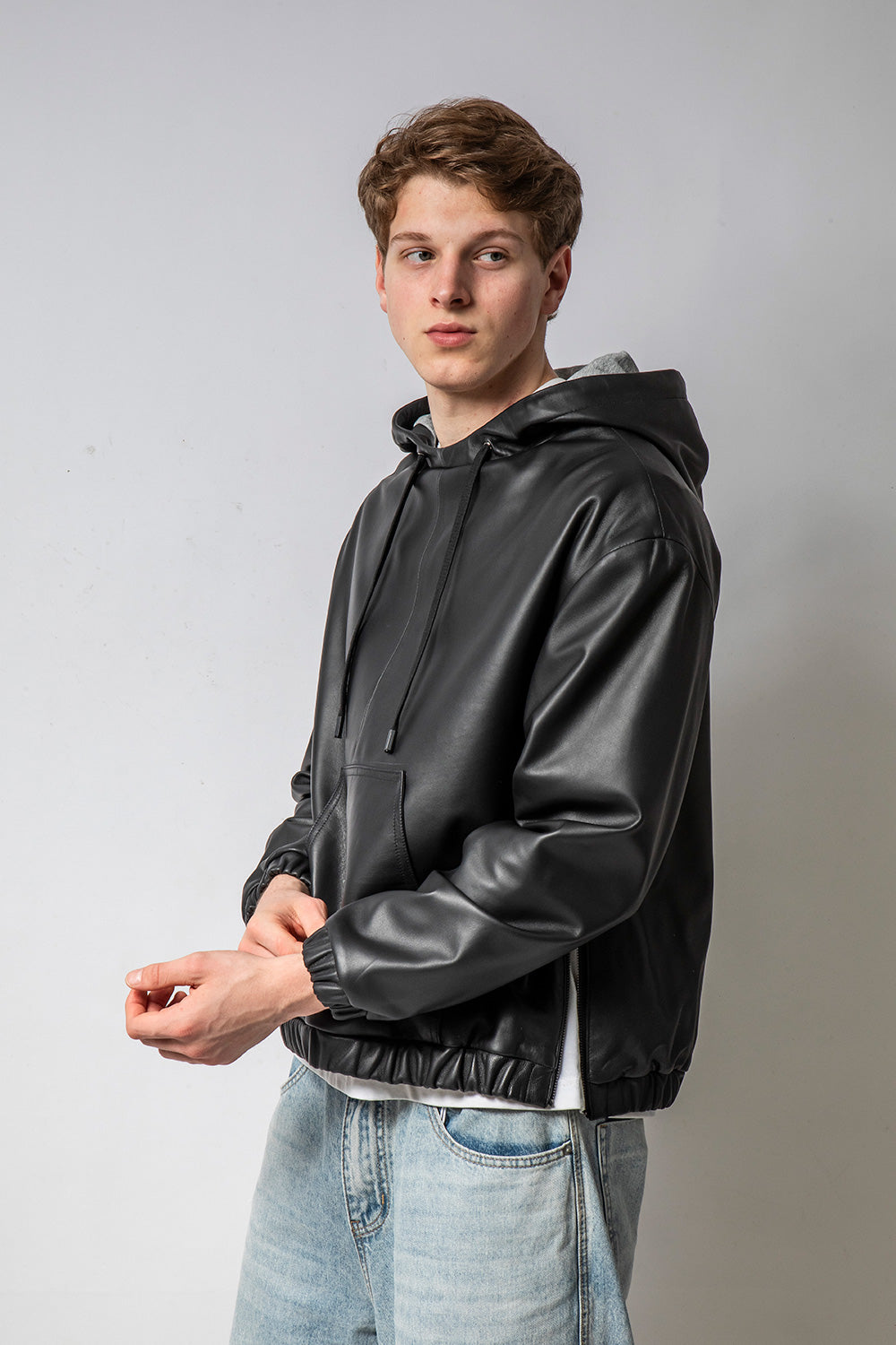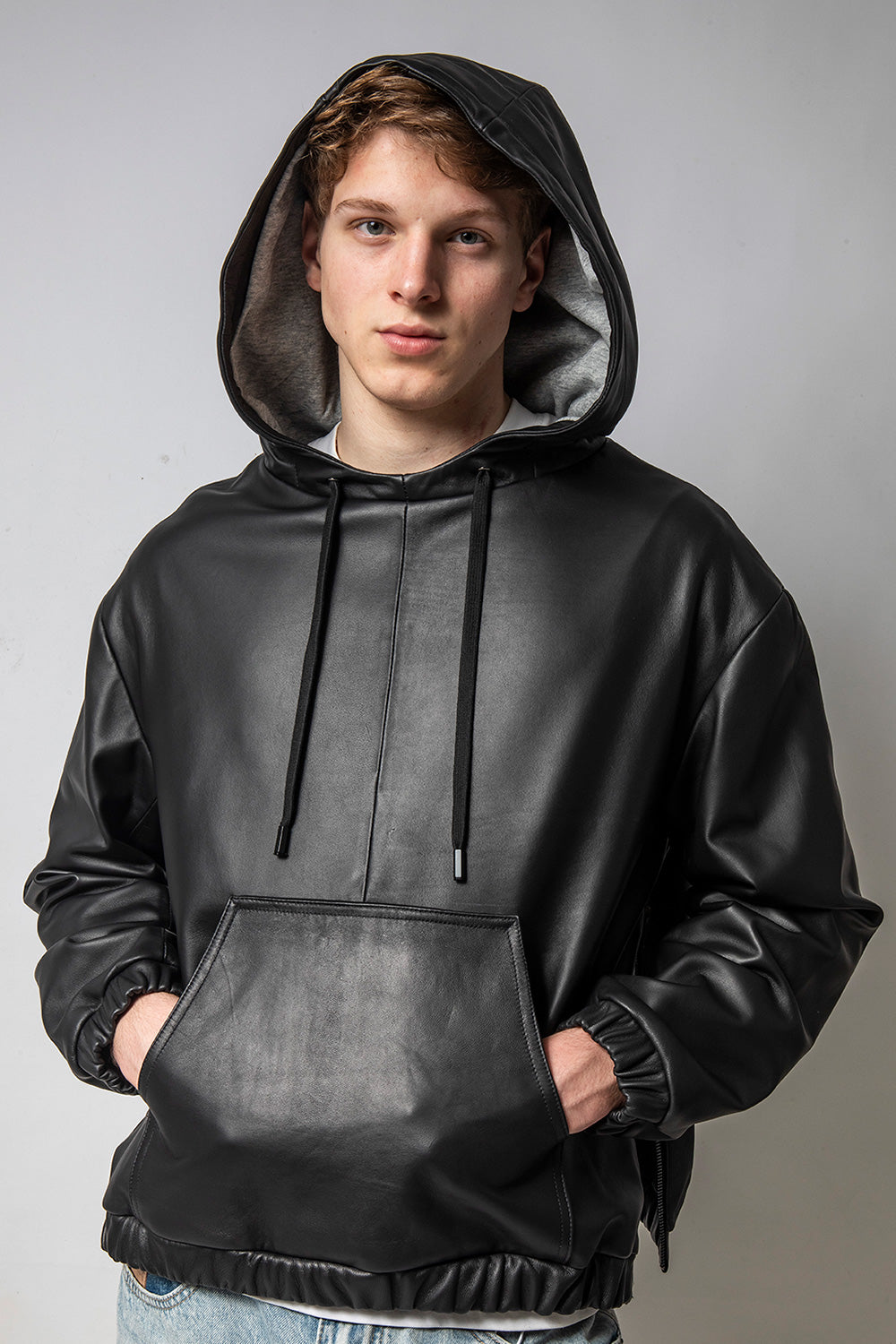 NewHoodie 連帽寬身羊皮外套