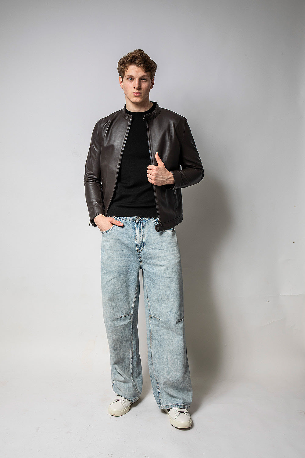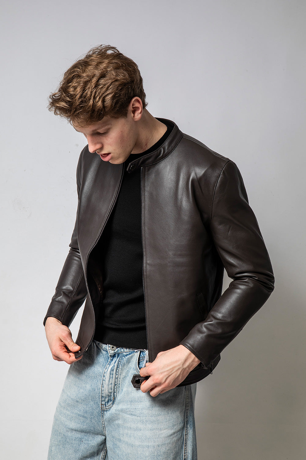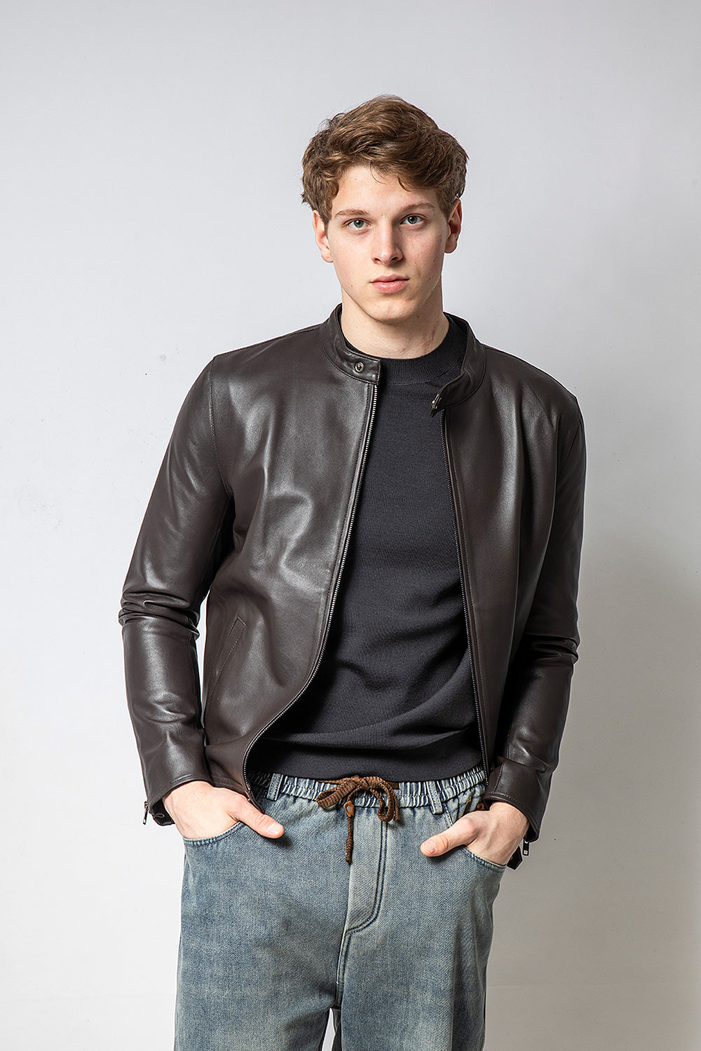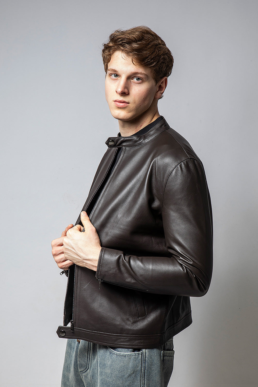 KAFE 深咖啡立領皮外套