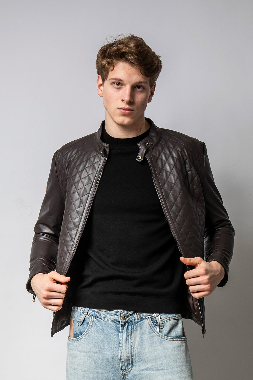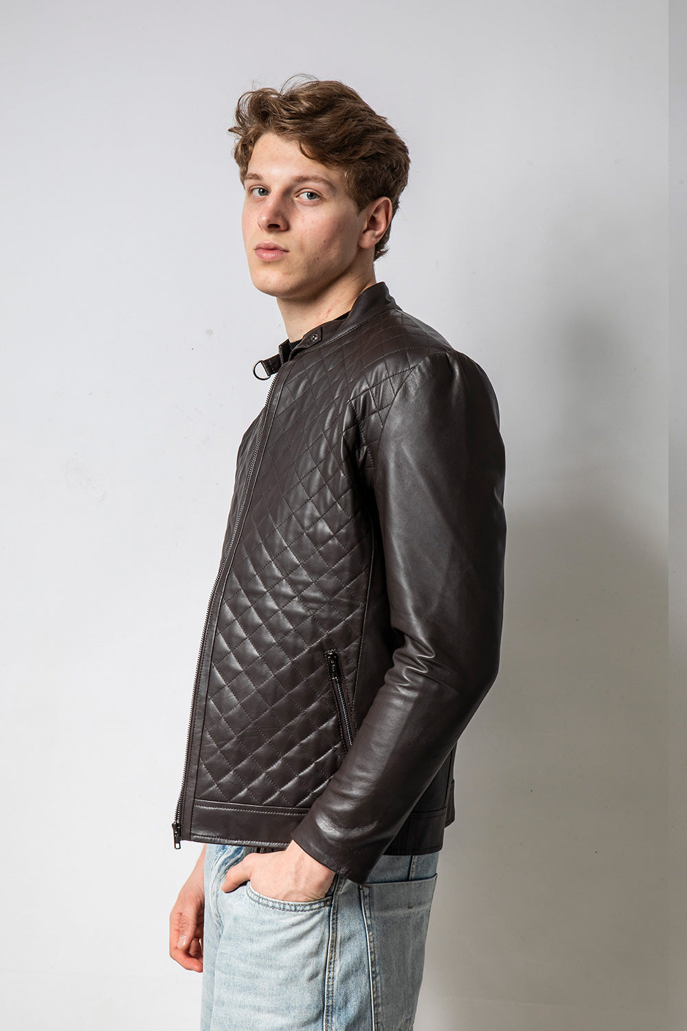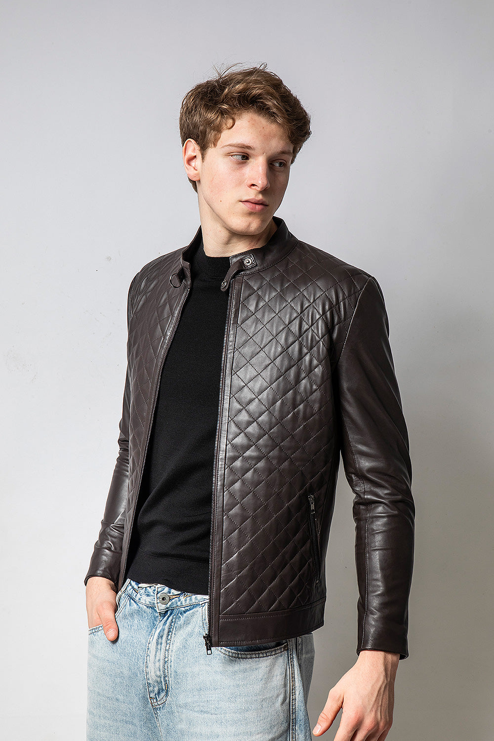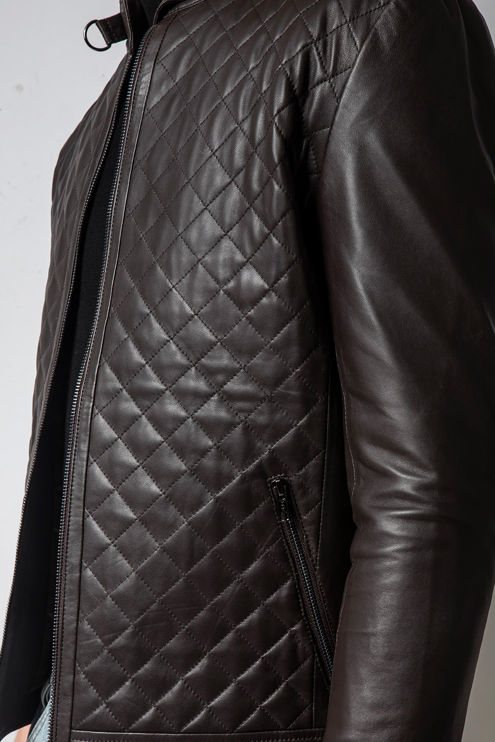 MATRIX 深咖前身菱紋皮外套
