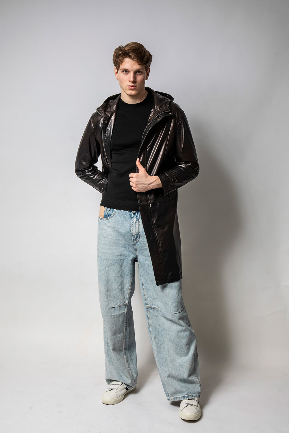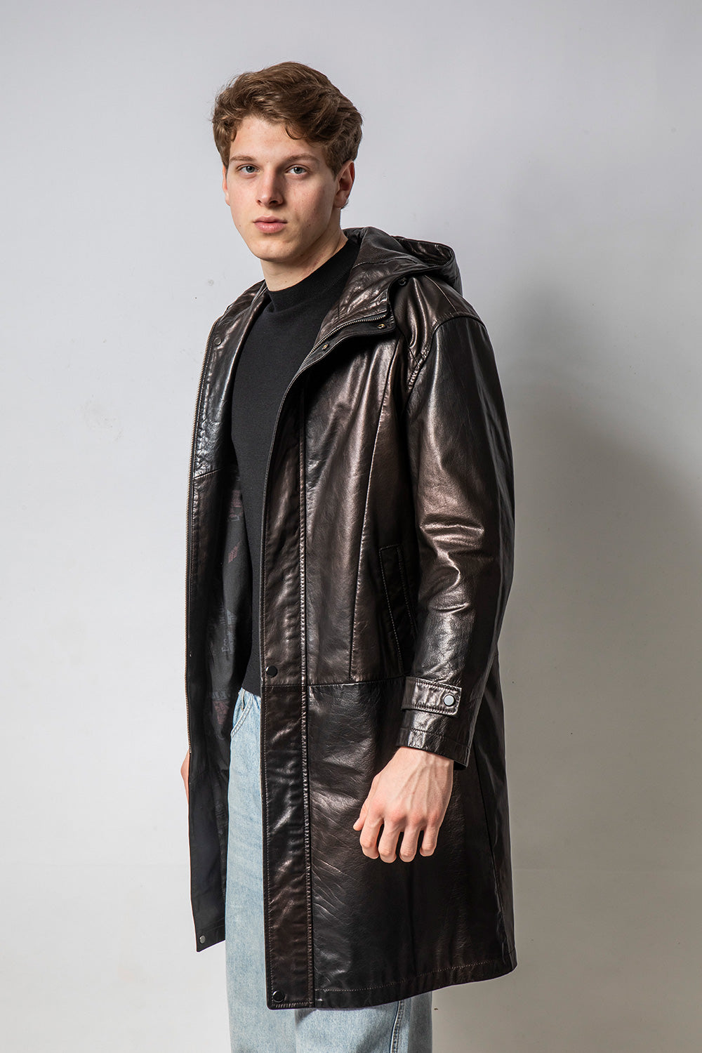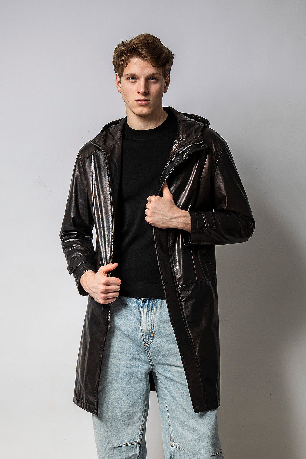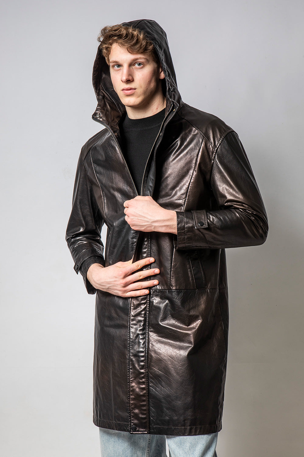 GHOST 連帽變色亮皮牛皮外套