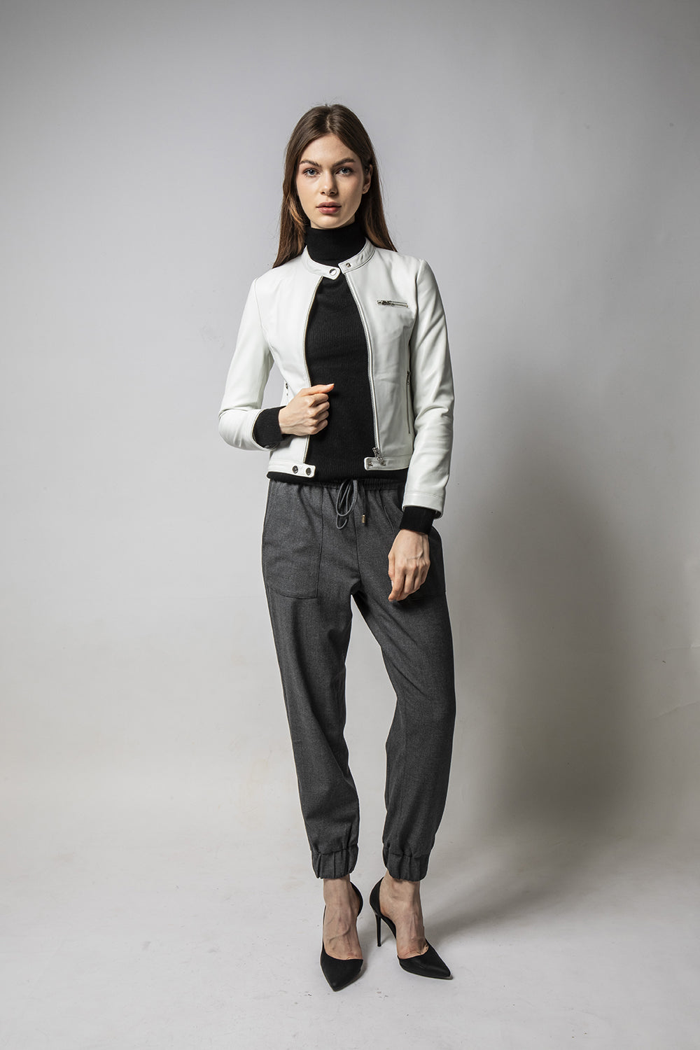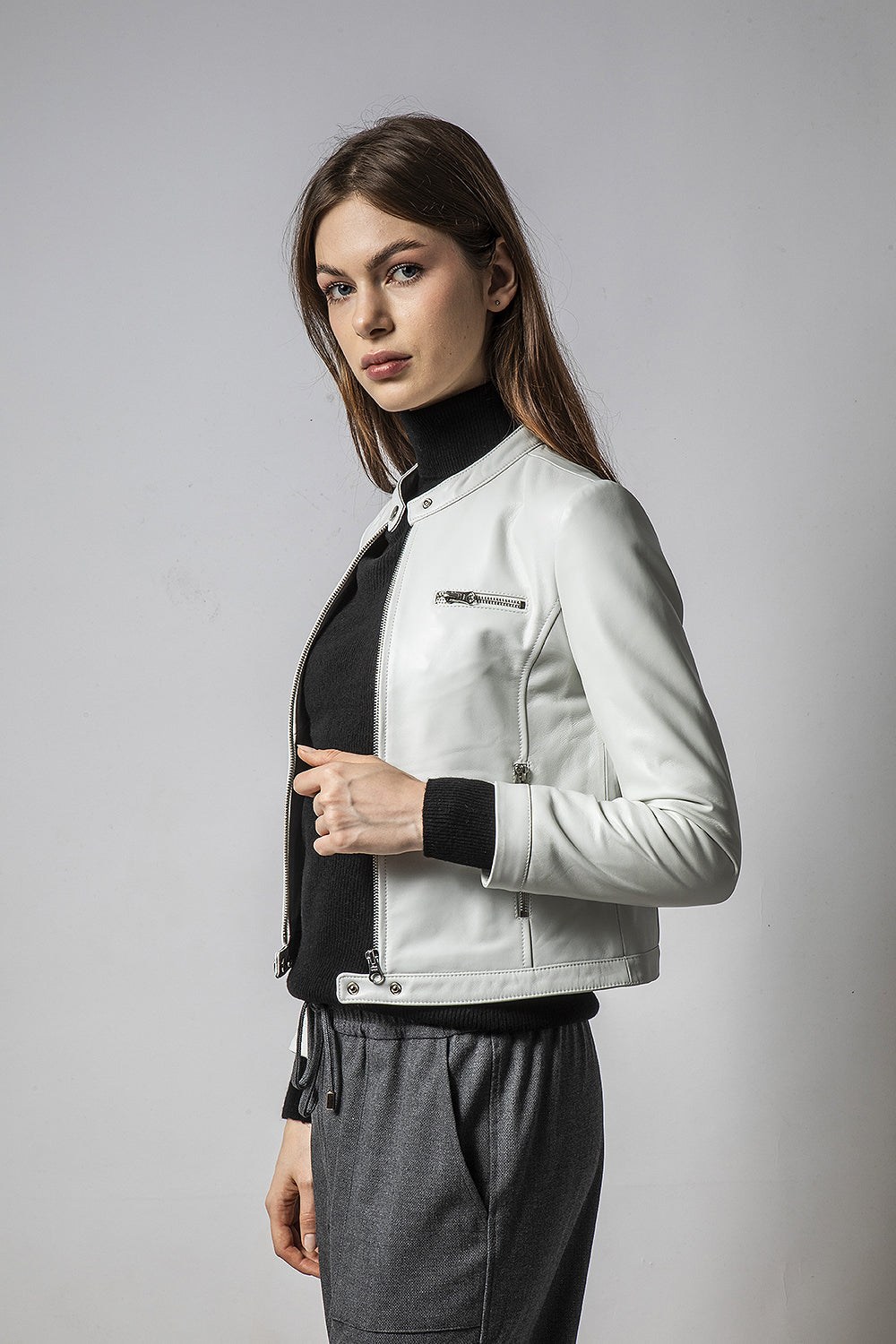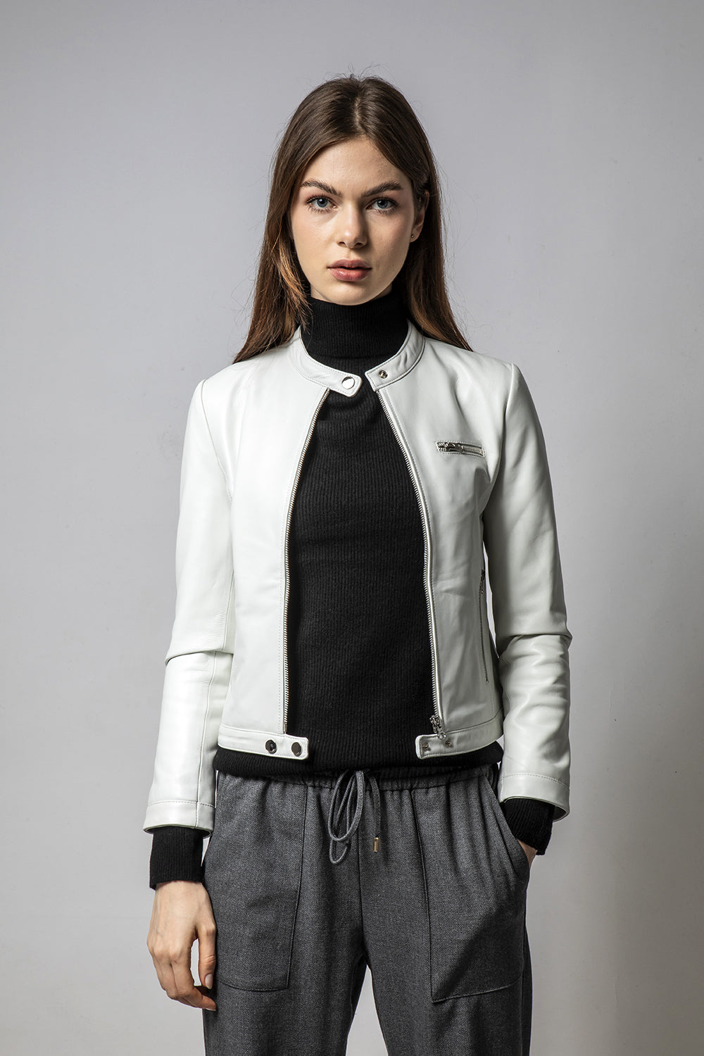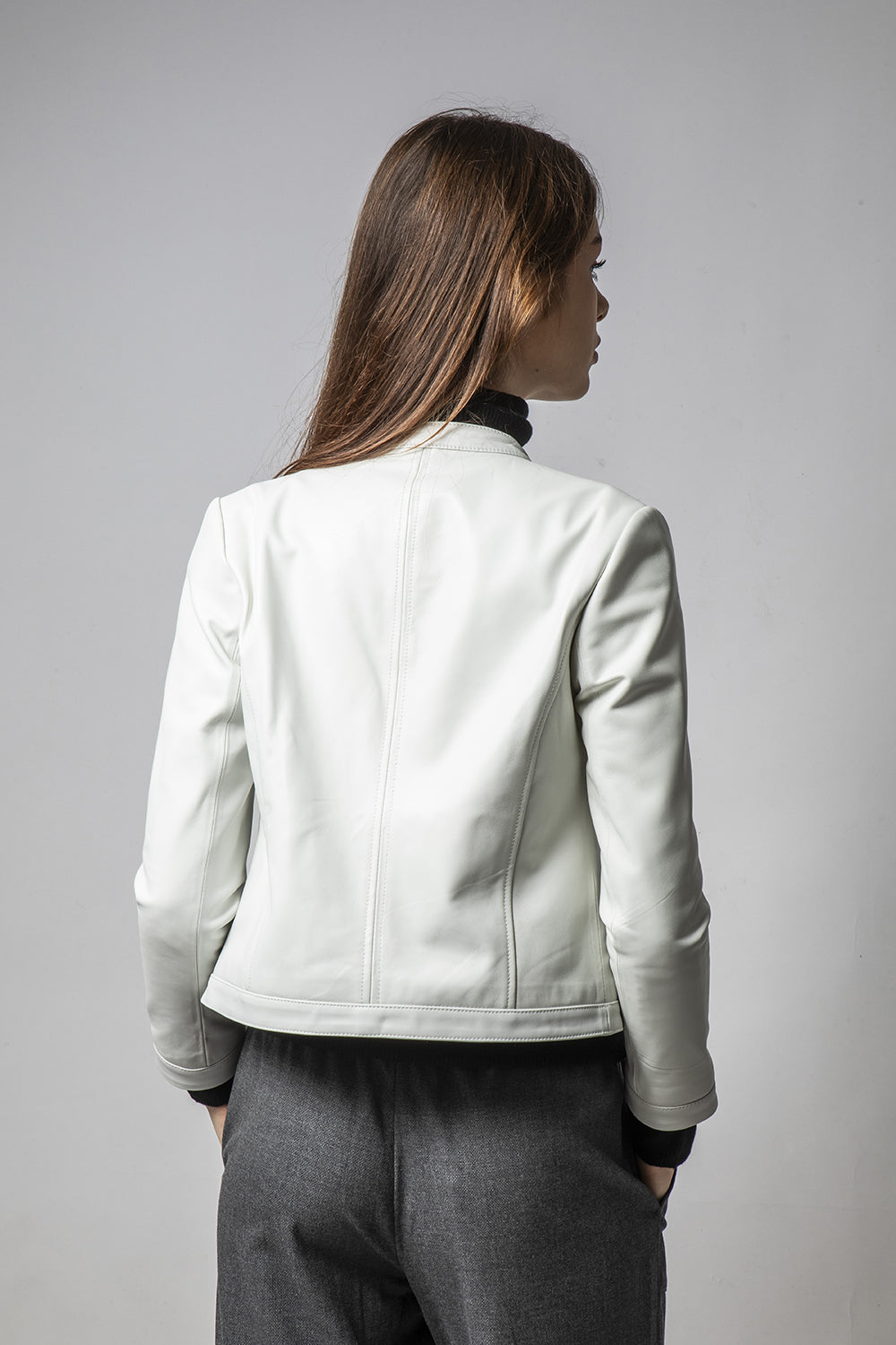 MINT粉白立領簡約皮外套