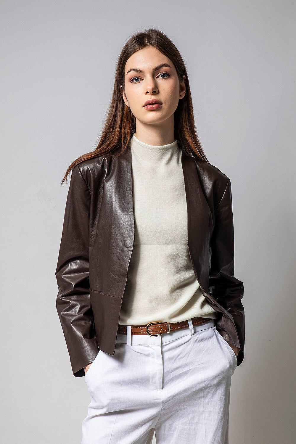 GIRLY咖啡色寬版皮外套