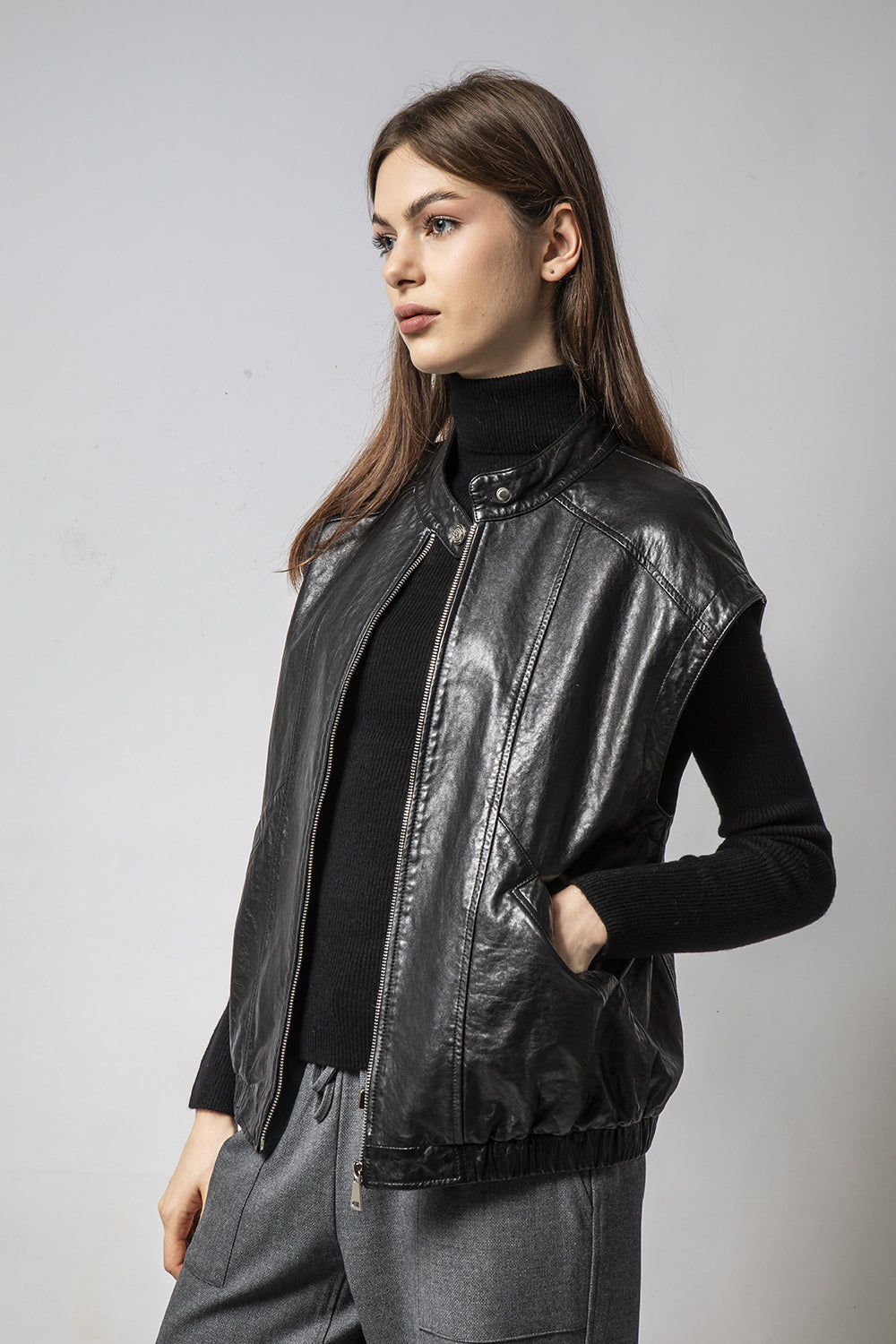- 修身拉鍊背心外套