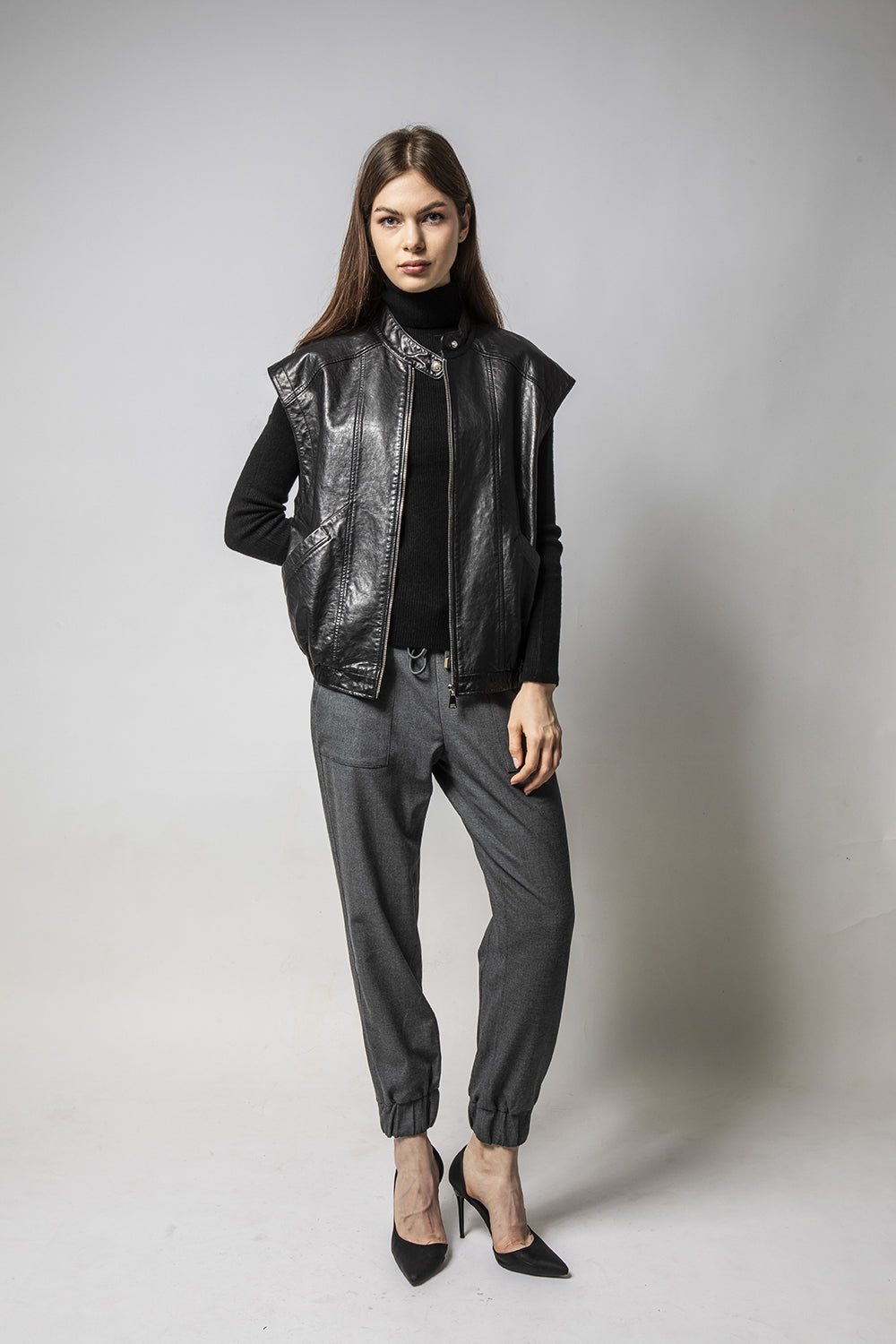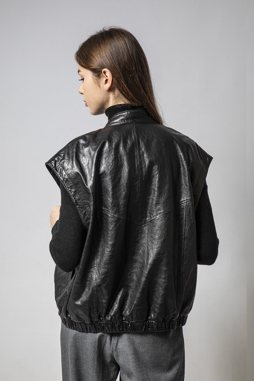 PLAY黑色背心款皮外套