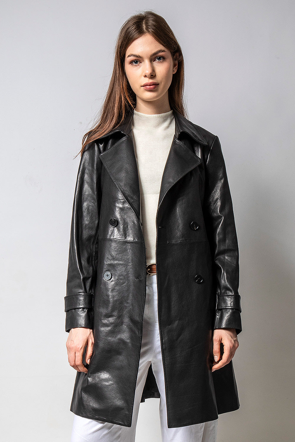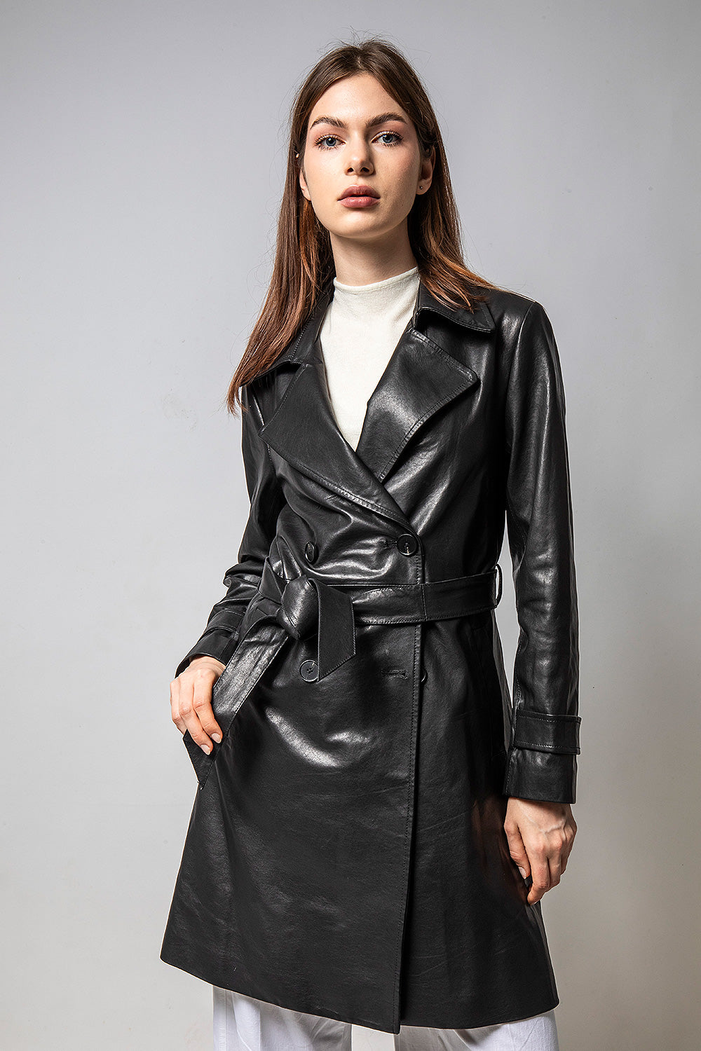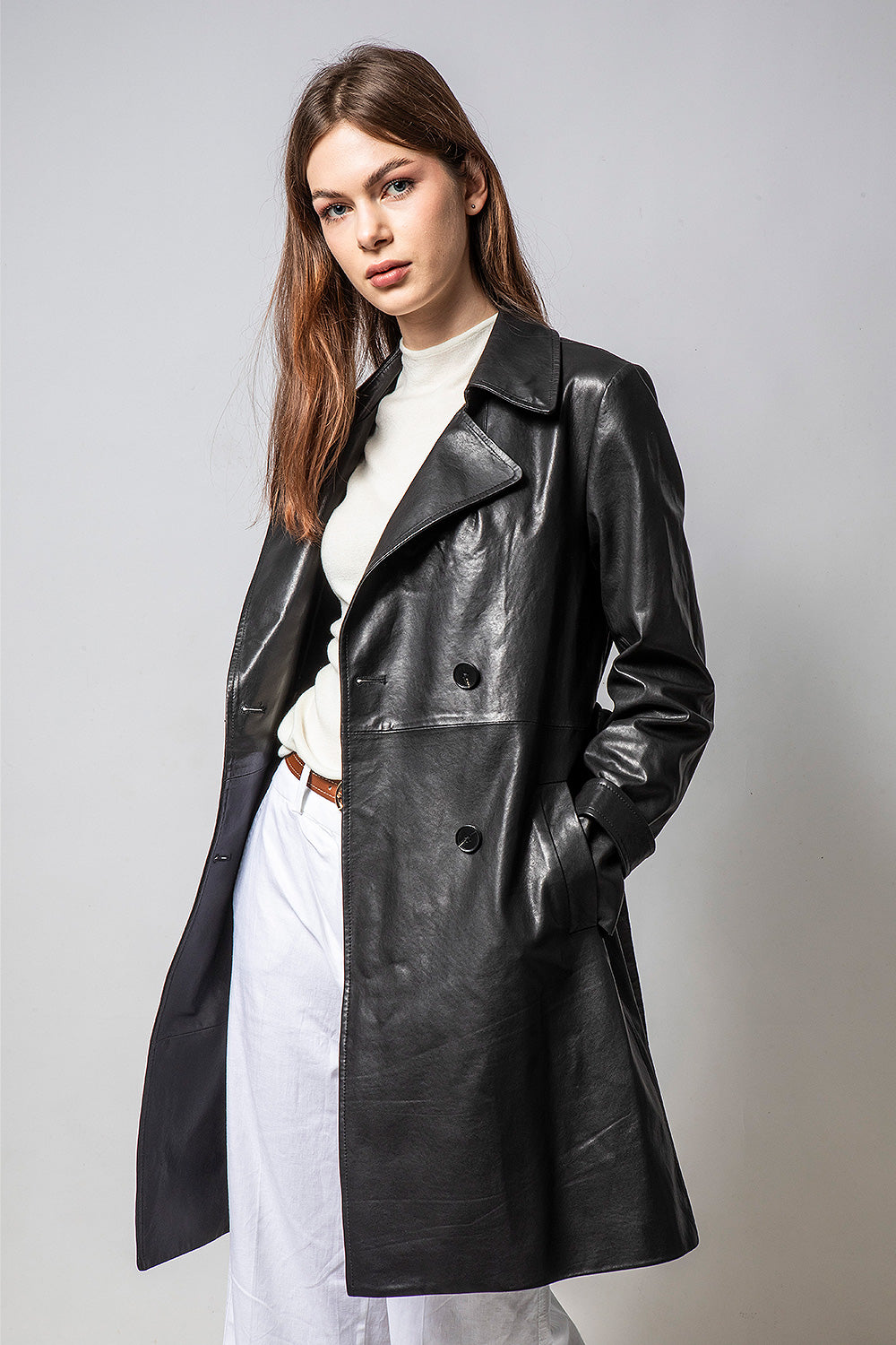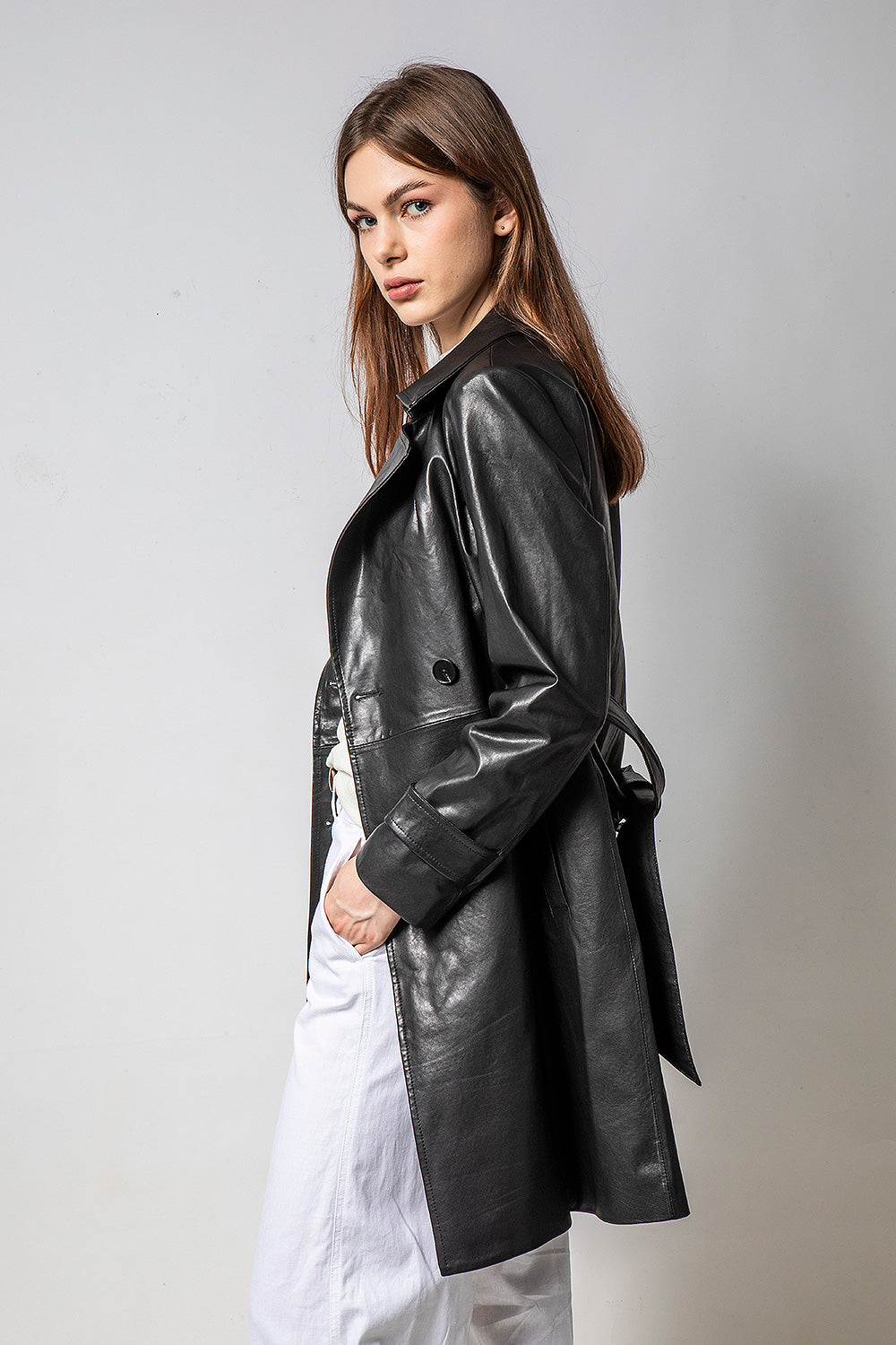 TRENCH 長版經典風衣皮外套